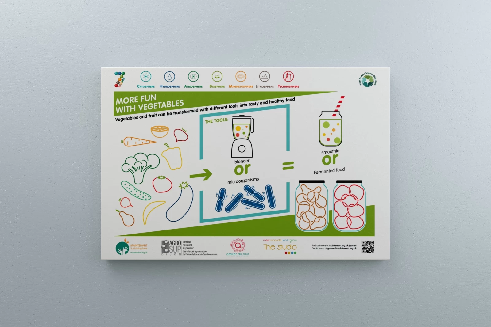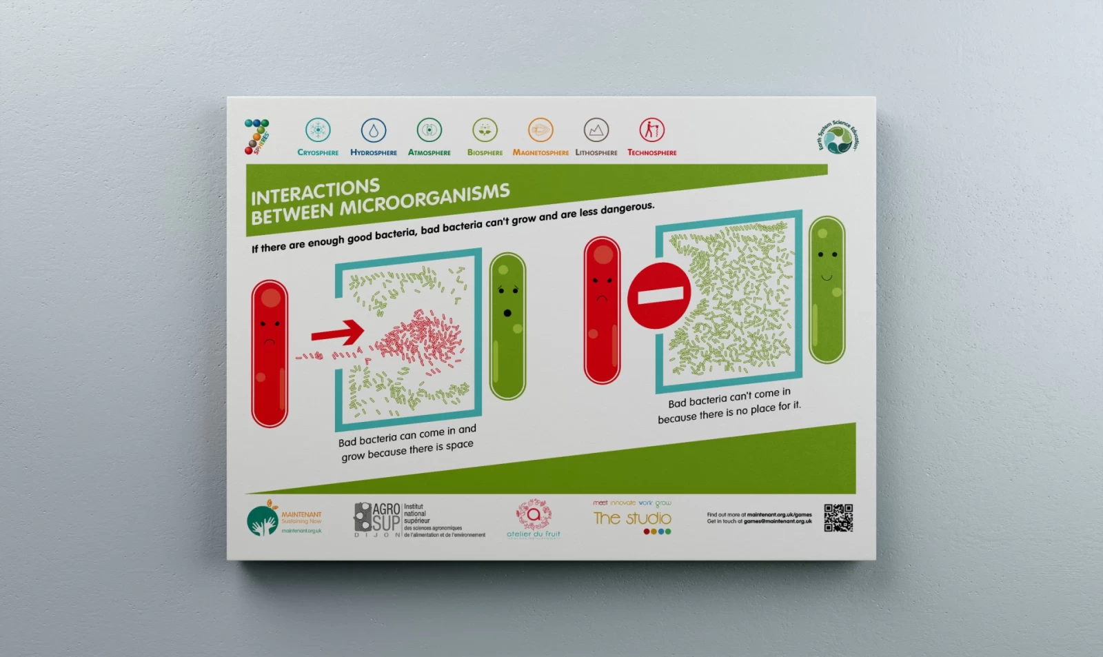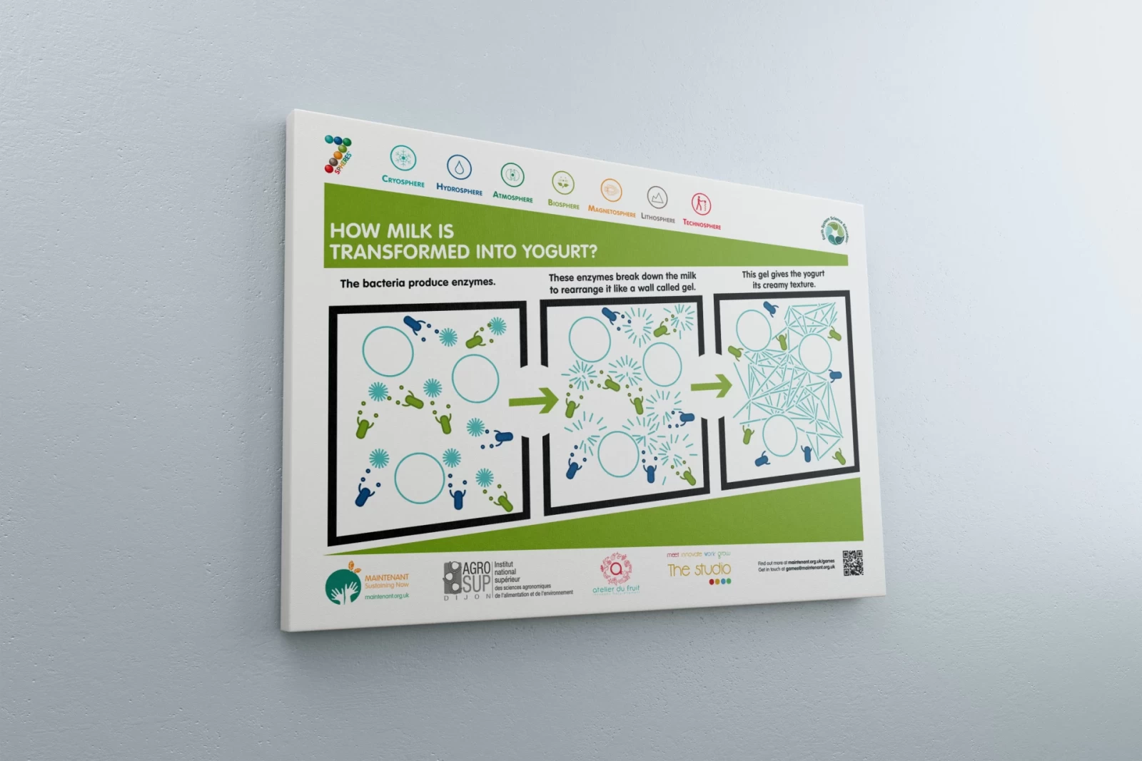 Maintenant Sustaining Now! is a social enterprise promoting climate change awareness. Among numerous other activities they organize workshops at schools, fairs and festivals. In 2018 they ran a campaign titled 'Bacteria my friend'. One of the campaign workshops was on making non-dairy yoghurt. I designed a series of posters that explain the role of bacteria in making yoghurt.