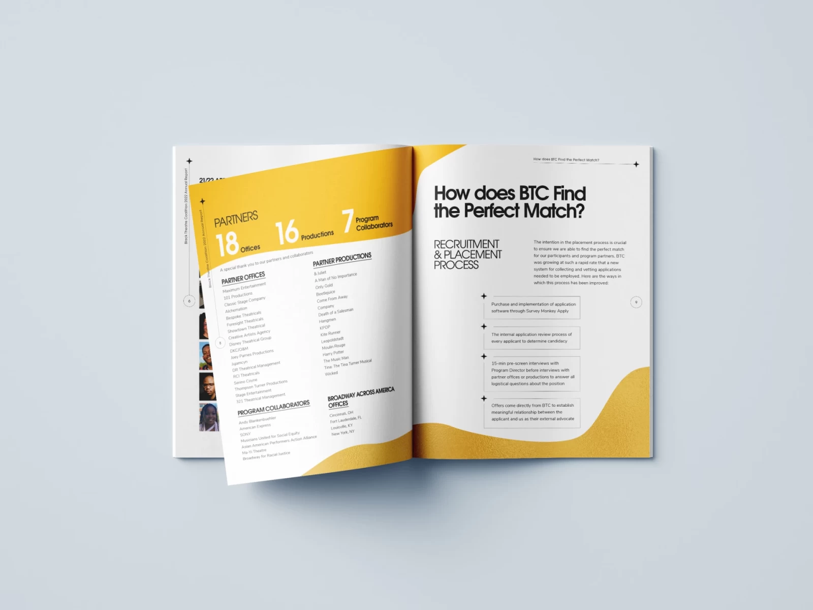 Black Theatre Coalition is an American nonprofit organization with a mission to support Black professionals both on-stage and off-stage. I was excited to get a chance to design their first ever annual report.
