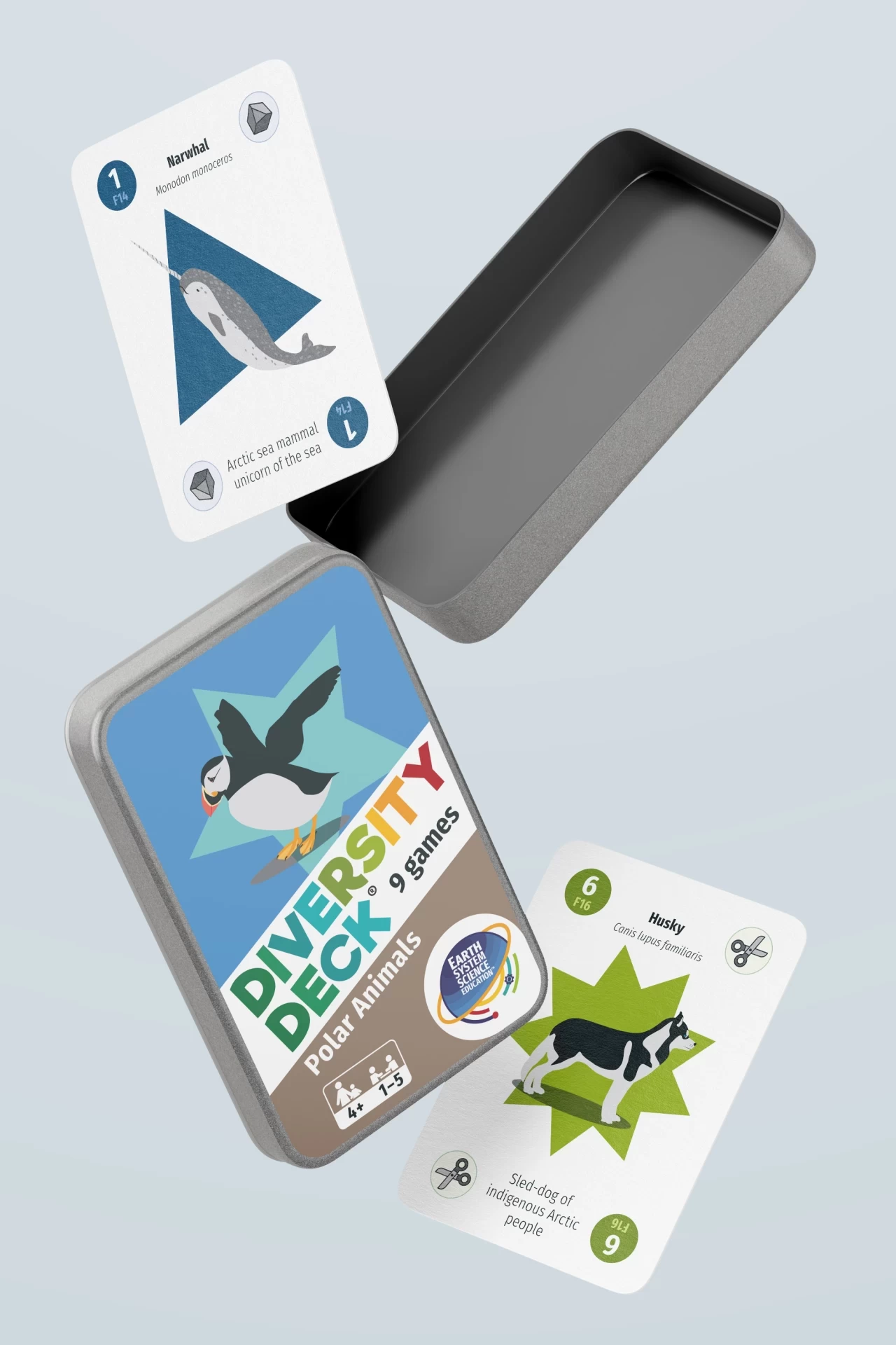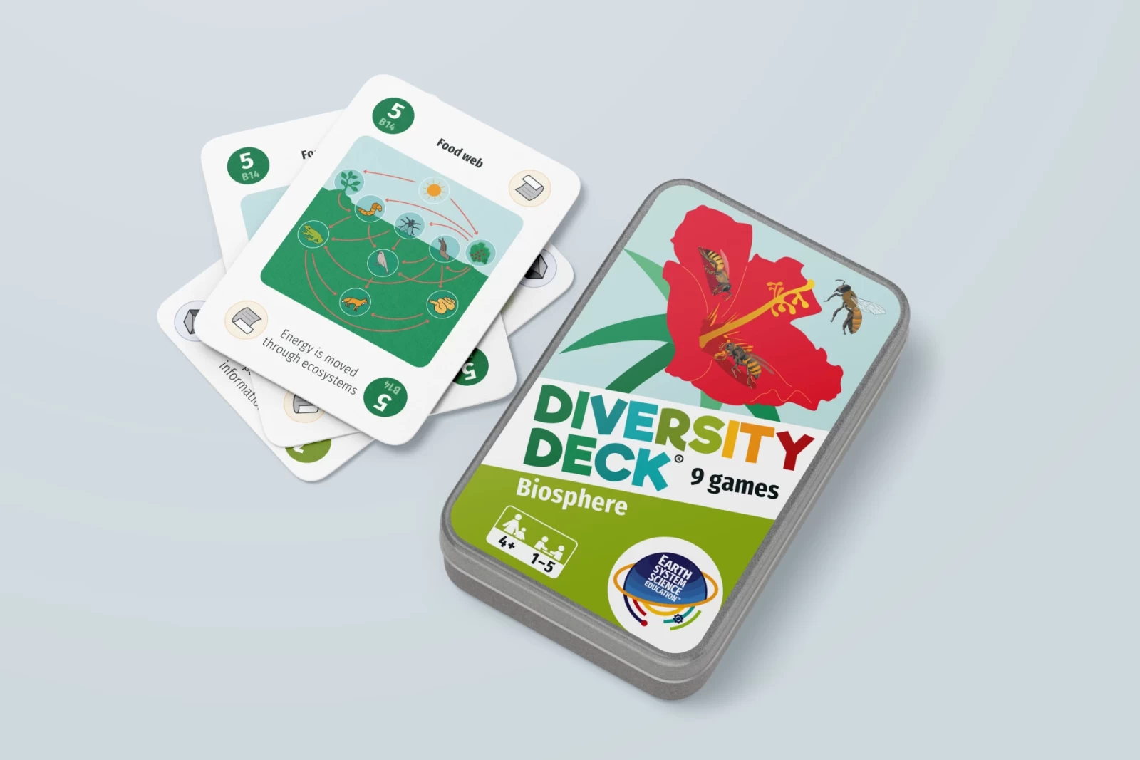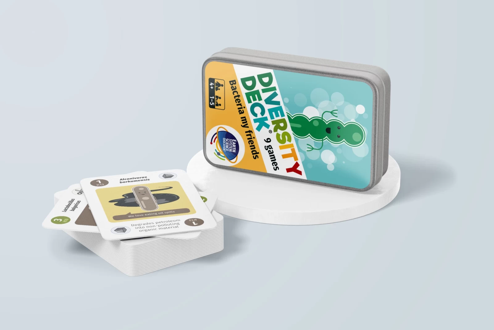 Diversity Deck is a set of sixteen card games, each one dedicated to a particular scientific topic, be it the role of bacteria in people's lives, the impact of human activity on the planet, or famous scientists who have studied the Earth. I developed the game brand, designed the packaging, and created most of the 100+ illustrations.
